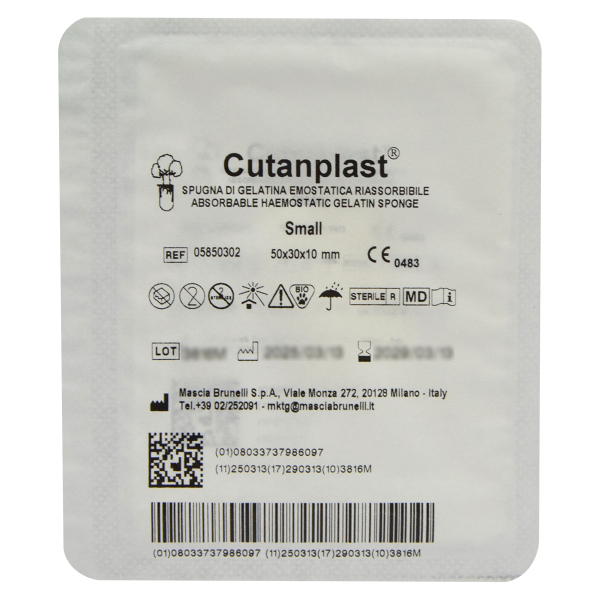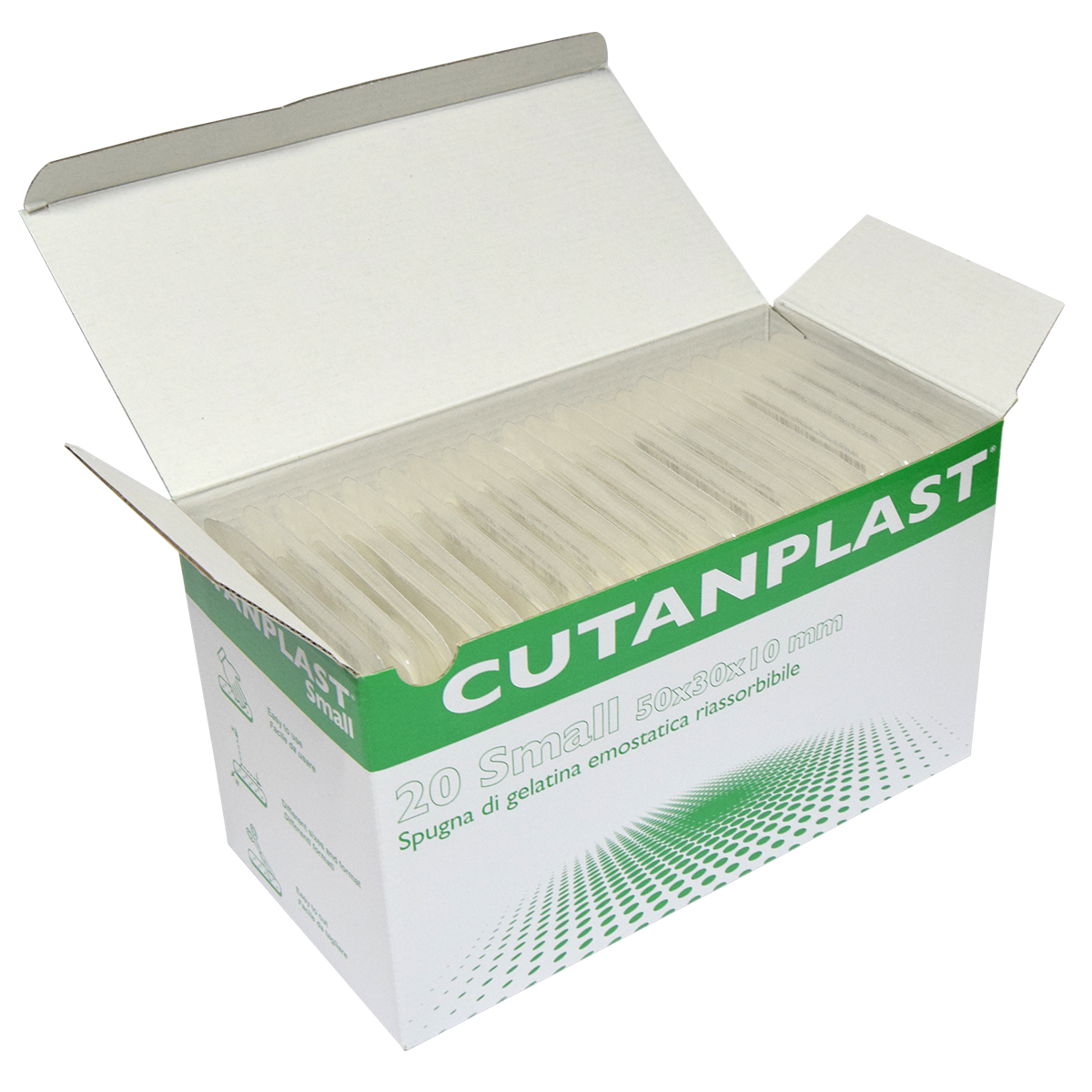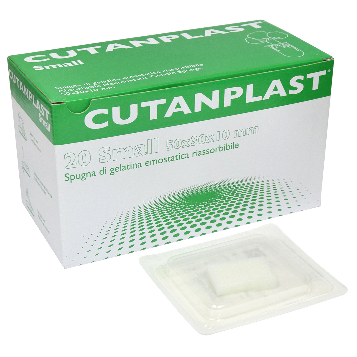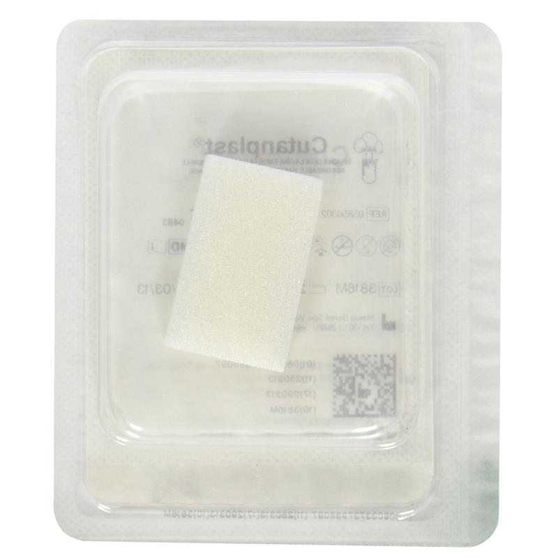 La esponja de gelatina Cutanplast tiene una estructura porosa que activa los trombocitos en el momento en que la sangre entra en contacto con la matriz de la esponja. Esto provoca que los trombocitos liberen una serie de sustancias que promueven su agregación al mismo tiempo que su superficie cambia de carácter, lo que les permite actuar como un catalizador para la formación de la fibrina. Cutanplast contra el sitio de sangrado. En un corto período de tiempo se adherirá a la herida y controlara la hemorragia.